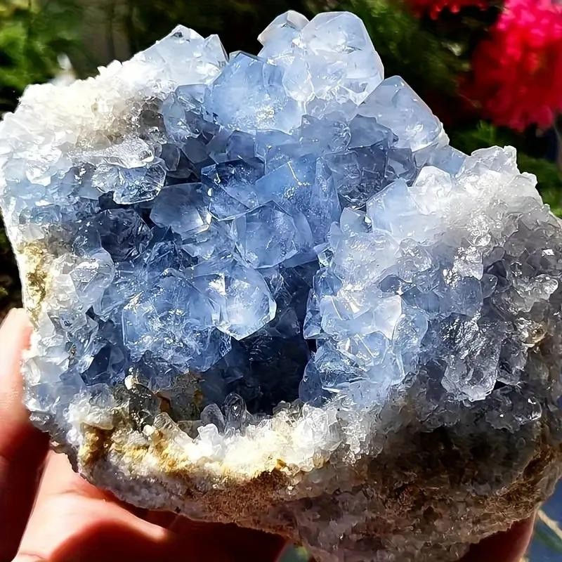 Large Sky Blue Crystal Celestite Cluster in Limestone - statement specimen